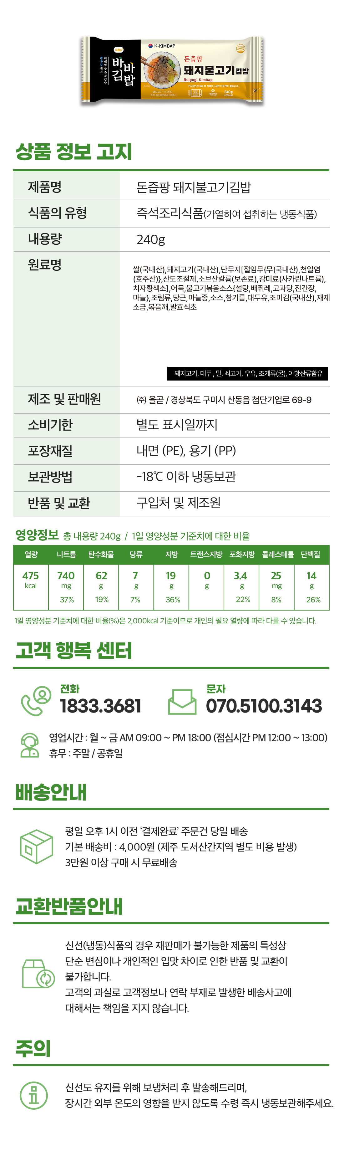 [바바김밥] 돈즙팡 돼지불고기김밥